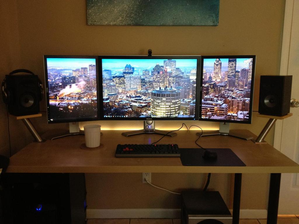 Se lo desideri, puoi impostare sfondi diversi per ogni monitor. In alternativa, c’è una cartella piena di immagini che possono essere mescolate casualmente come sfondi del desktop con un’immagine diversa sui tre schermi che stai utilizzando: