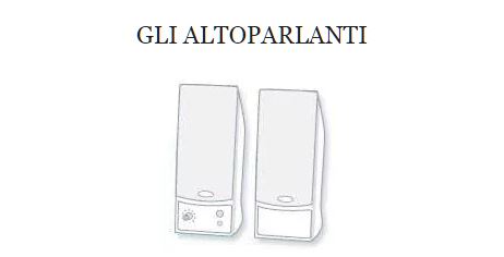 Gli altoparlanti sono una periferica esterna del computer ed hanno soltanto lo scopo di riprodurre i suoni emessi dalla scheda audio del PC. Generalmente sono due, in maniera tale da poter creare un effetto stereo, ma alcuni modelli possono essere anche dotati di un subwoofer, il quale permette di far ottenere dei suoni ancora migliori.